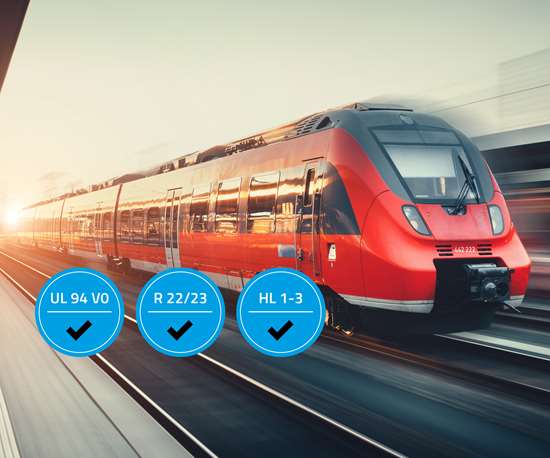 Bu seri, demiryolu uygulamaları için DIN EN 45545-2 standardına uygun piyasadaki tek TPE malzemesidir. Özel olarak geliştirilen malzemeler, 3 mm'ye kadar duvar kalınlığına sahip HL1-3 tehlike seviyeleri için R22 ve R23 gereksinimlerini karşılar.